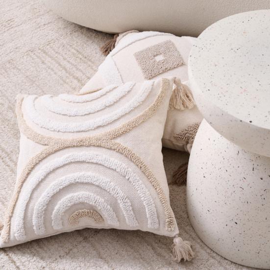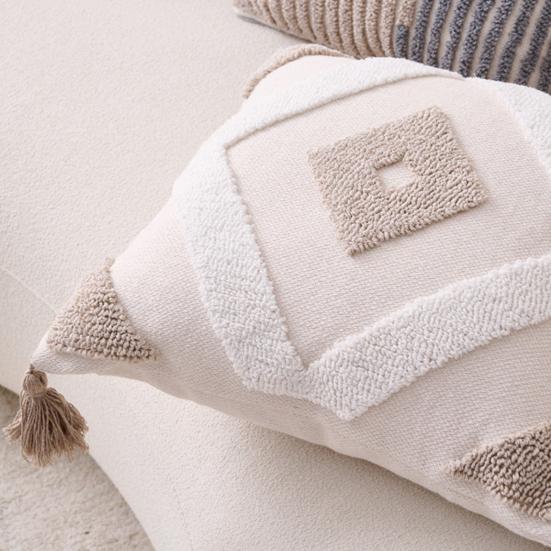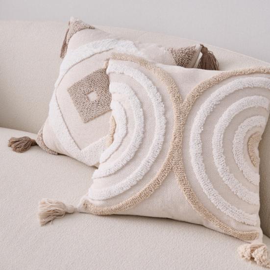 Изготовлено из высококачественной, мягкой и дышащей ткани, обеспечивает комфорт, приятный для кожи, и подходит для всех сезонов.. Отличительные кисточки придают грациозное движение и женственность, отражая ваш изысканный вкус в каждой детали.. Чехол со скрытой молнией легко снимается и стирается, что делает его универсальным для использования на диванах, изголовьях кроватей, татами или эркерных окнах.