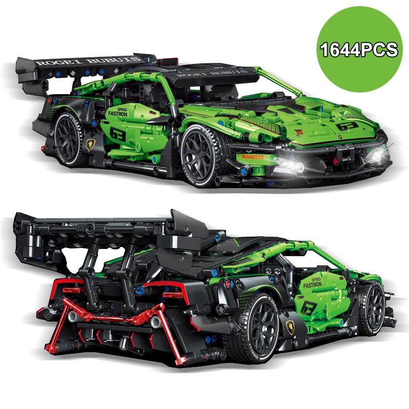MOC Технический Зеленый Гоночный Автомобиль Набор Строительных Блоков Модель Комплект DIY Сборка Кубики STEM Образовательные Игрушки Подарок На День Рождения для Детей