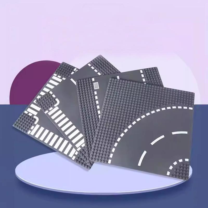 25.5x25.5cm Building Blocks Baseplate City Road Street Baseplate Straight Crossroad Curve T-Junction Children Bricks Toys