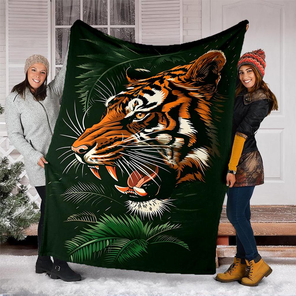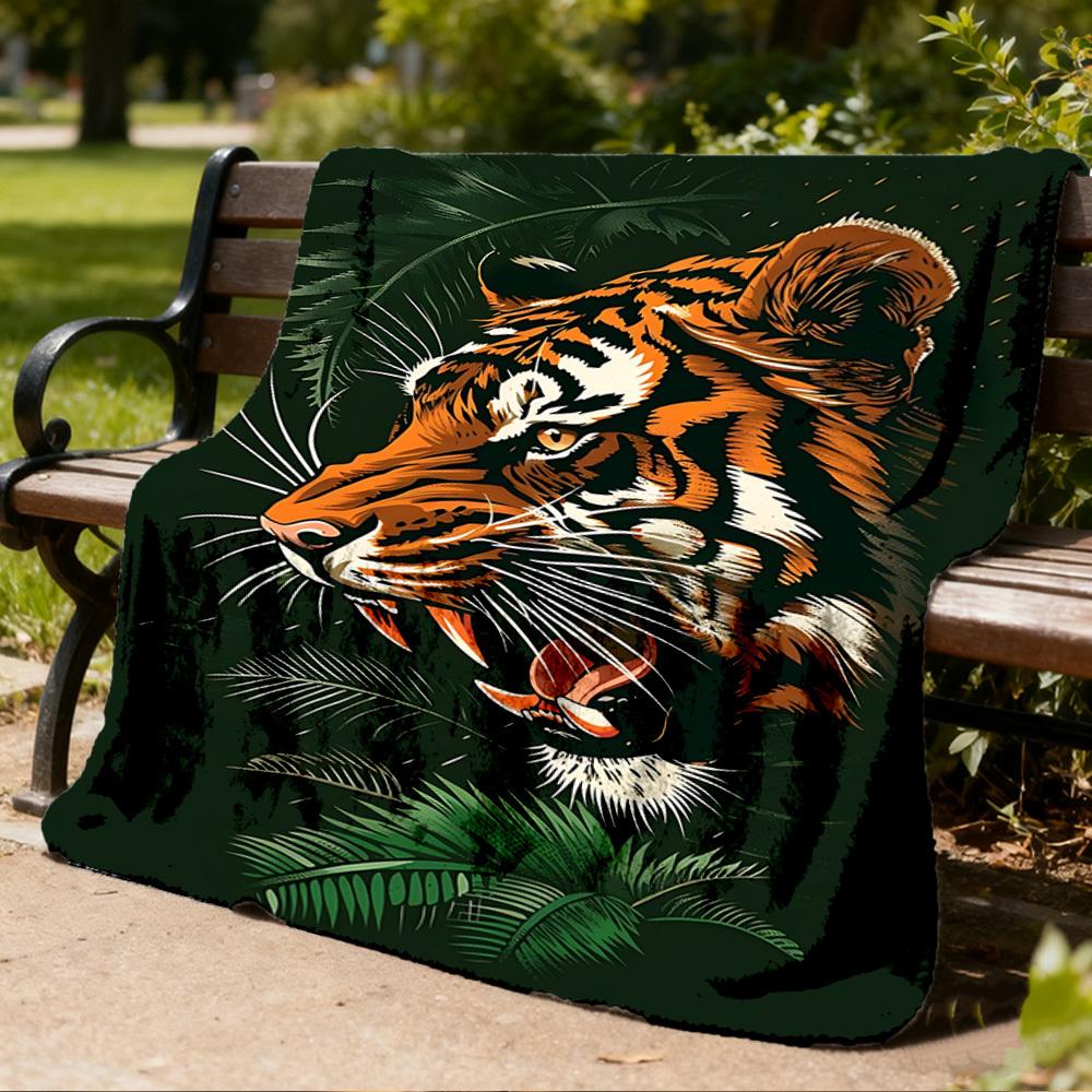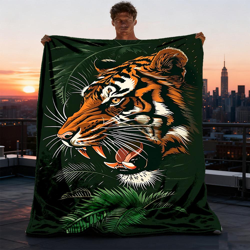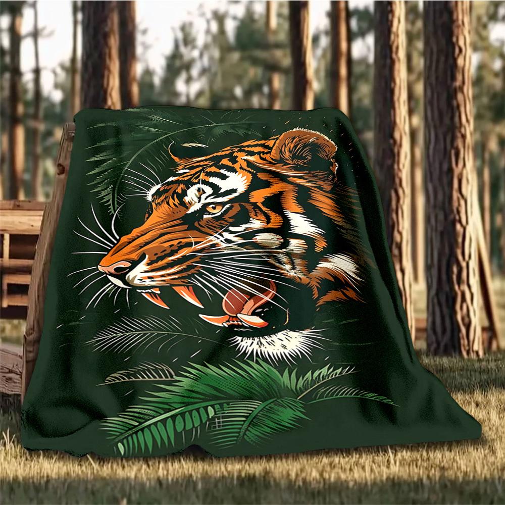 1pc Tiger Print Throw Blanket Polyester Fiber, Lightweight Flannel, Soft & Warm, All Season Use for Outdoor, Camping Digital Print