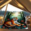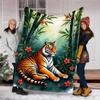 1pc Tiger Bamboo Flowers Throw Blanket Polyester Fiber, Lightweight Flannel, Soft & Warm, All Season Use for Outdoor, Camping Digital Print
