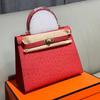 Сумка Келли первого слоя из коровьей кожи с узором под страуса