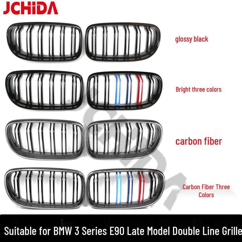 BMW 3 Series E90 Late Model Front Grille in Bright Black, Tri-color, or Carbon Fiber for Car Modification