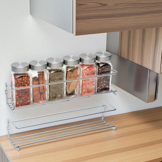 Оптимальный размер для повседневного хранения: Специально разработанный для размещения стандартных баночек и бутылочек со специями, этот стеллаж аккуратно организует ваши часто используемые ингредиенты.. Он устраняет беспорядок, предоставляя специальные отделения, которые делают специи видимыми и доступными во время приготовления.