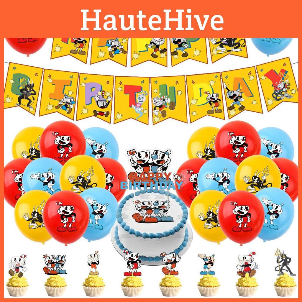 Набор украшений для дня рождения в стиле Cuphead с дизайном головы в виде чайной чашки, из яркой бумаги — купить товар онлайн с бесплатной доставкой по всему миру!