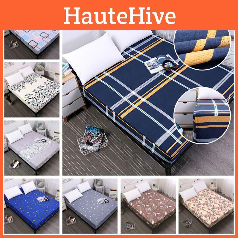 Элегантный защитный чехол для матраса с принтом в цветочные полосы и пыленепростыней на резинке