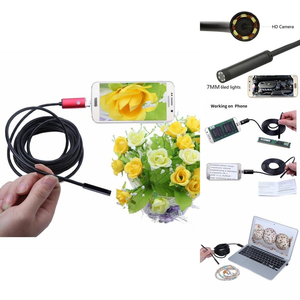 Высококачественная 7-мм 6-светодиодная USB-эндоскопическая бороскопическая инспекционная камера 2 м 5 м