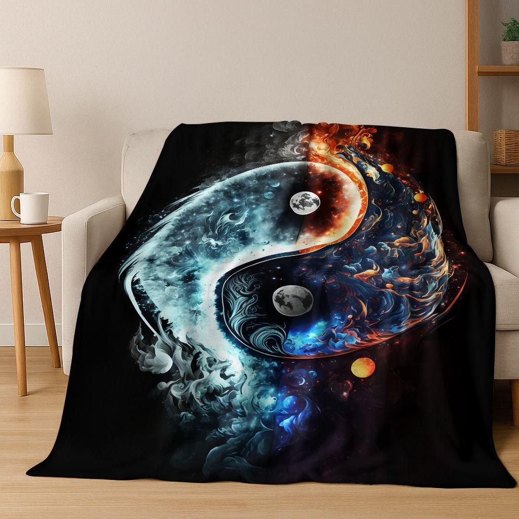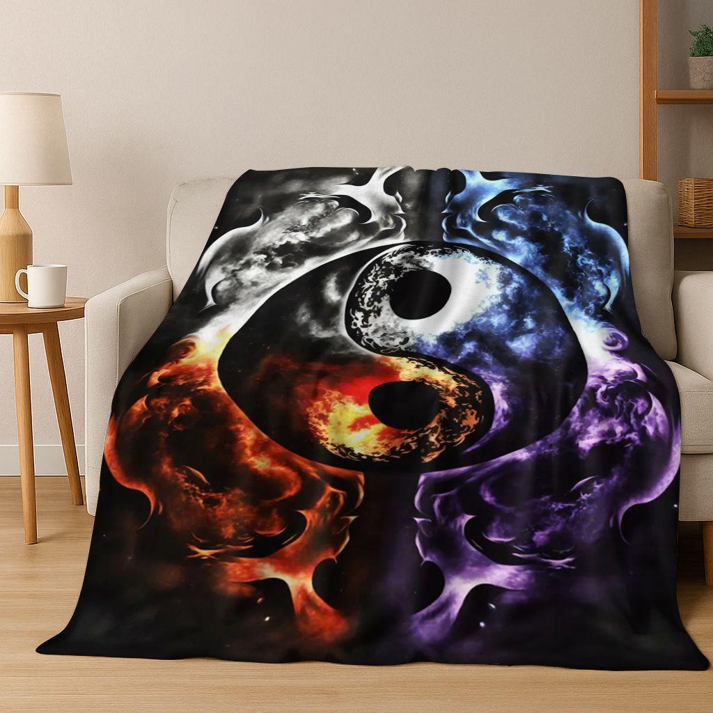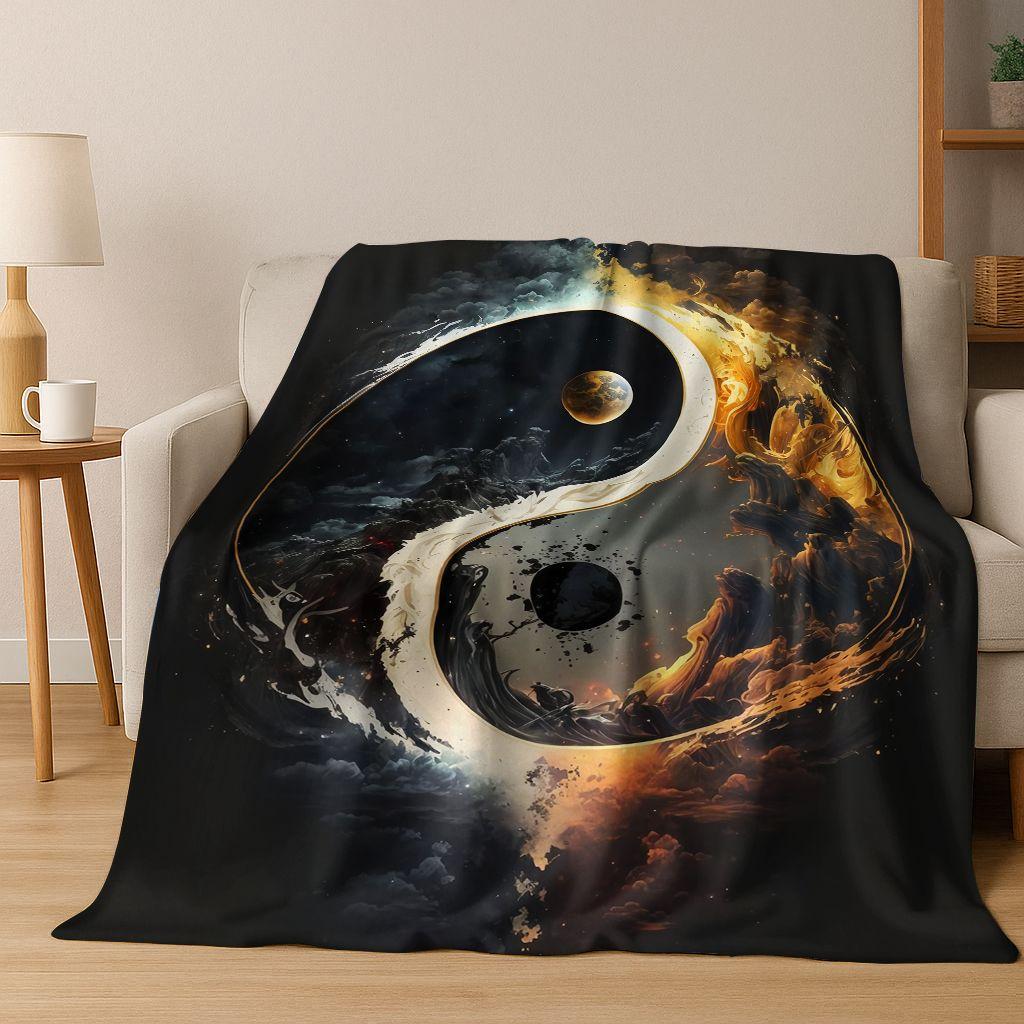 Nature Balance Yin Yang Tai Chi Black White Energy Flannel Blanket,Cozy Soft Throw Blanket for Home Bedroom Bed Sofa Cover Gift