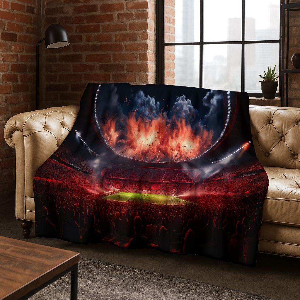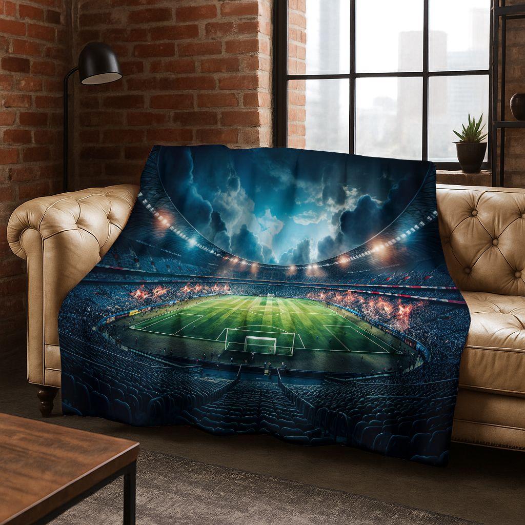 Green Black Football Field Stadium Art Flannel Blanket,Cozy Soft Throw Blanket for Home Bedroom Bed Sofa Picnic Cover Kids Gift