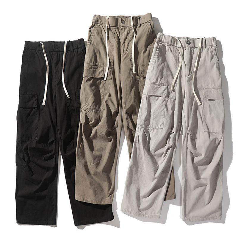 Original Foreign Trade Japanese-Style Large Pocket Jogger Cargo Pants for Men, Autumn Washed Cotton Casual Straight-Leg Long Pants