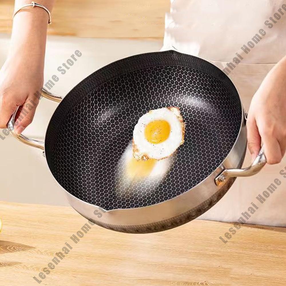 Non-Stick Egg Frying Pan Stainless Steel Soup Pot Honeycomb Induction Cooker Gas Stove General Durable Kitchen Cookware 30Cm Wok