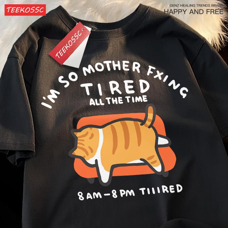 Уставший Кот Красота Короткий Сиамский Лежащий Диван Веселый Свободный Чистый Короткий Рукав Футболка Мужчины Женщины Японская Пара Футболка с Половиной Рукава