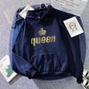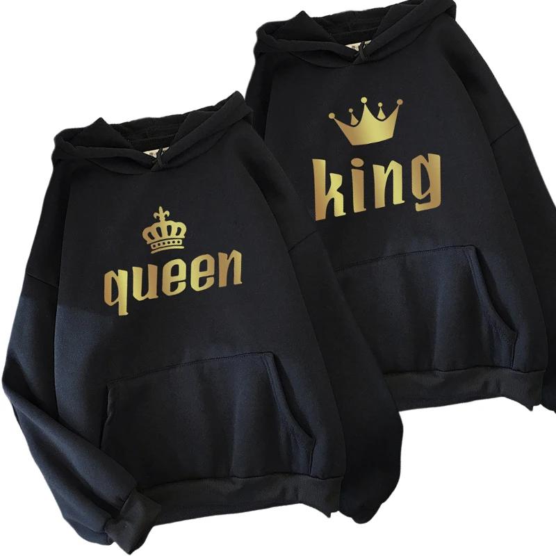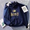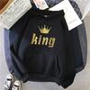 Женские Мужские Толстовки Классические с Принтом Король Королева Худи для Пар Все Сезоны Повседневные Спортивные Свободные Худи Пальто