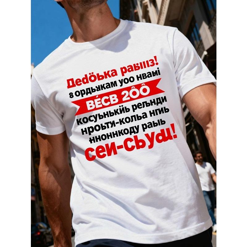 Европейский размер 1 шт. Мужская белая футболка с графическим принтом | Дизайн с русским текстом, короткий рукав, круглый вырез, повседневная летняя уличная одежда, приталенный крой — купить товар онлайн с бесплатной доставкой по всему миру!