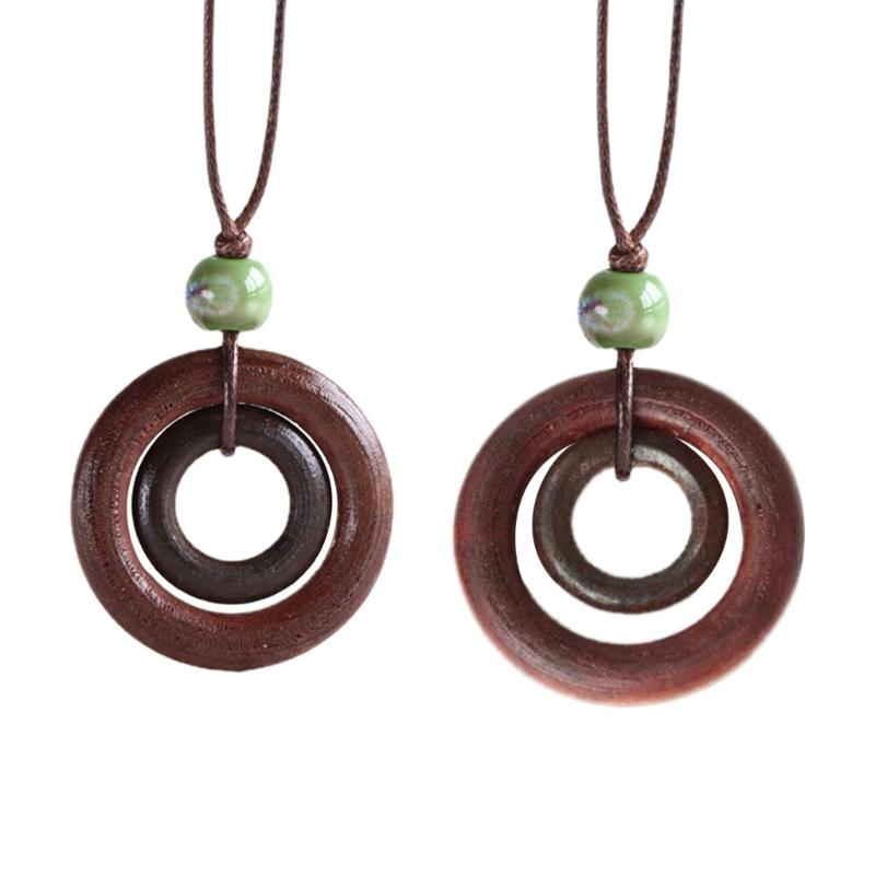 Деревянное Круглое Кольцо Подвеска Ожерелье Регулируемая Длинная Цепочка для Свитера Винтажное Ручной Работы Ожерелье-Ошейник Заявление Ювелирное Изделие
