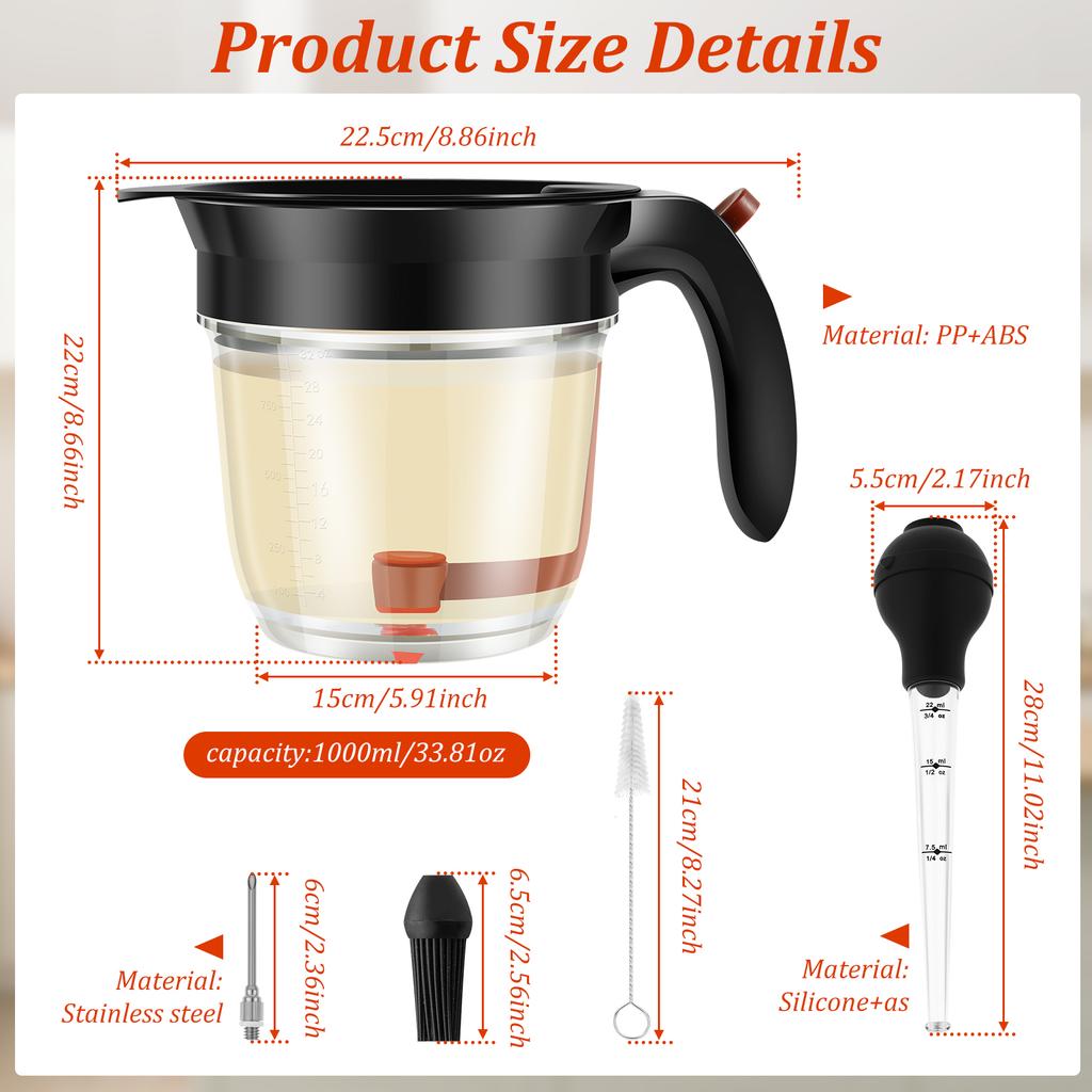 Fat Separator with Bottom Release Efficient Oil Separator Heat-resistant 33.81 Oz Gravy Separators for Cooking Kitchen Gadgets