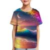 Модные Детские Футболки 3D Печать Цветной Узор Круглый Вырез Повседневные Топы с Коротким Рукавом Детские Футболки Одежда