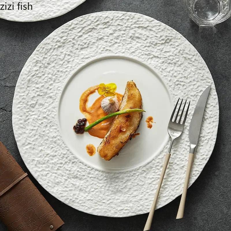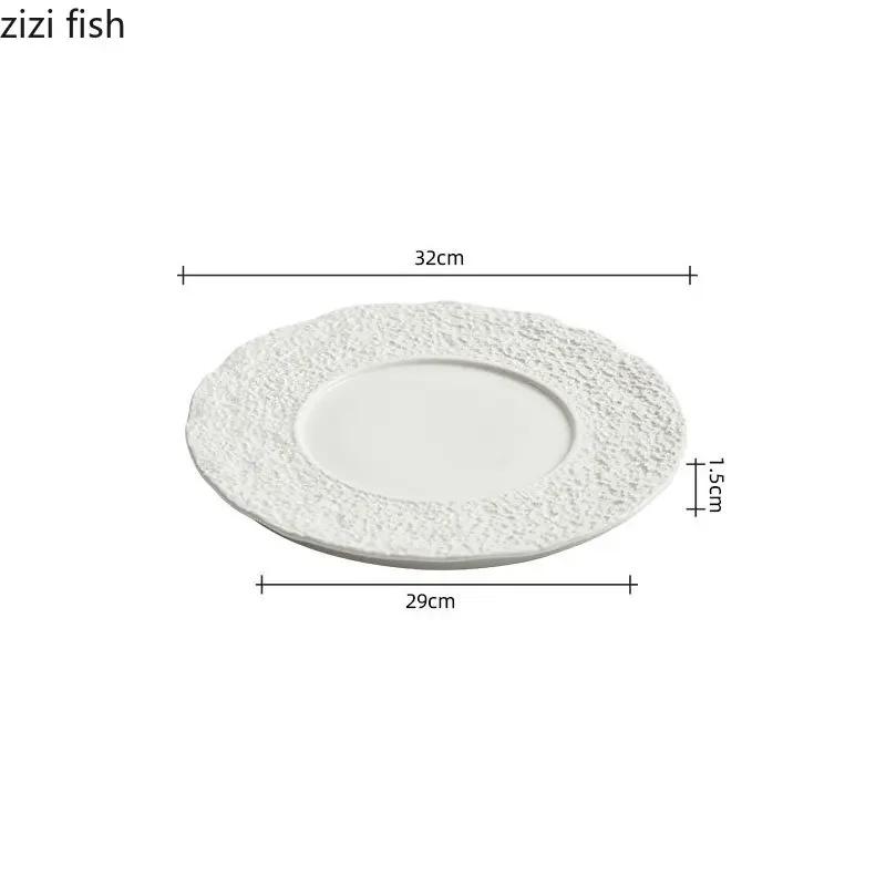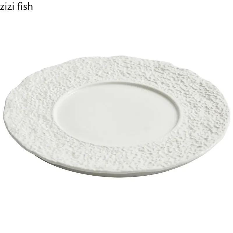 Stone Pattern Flat Plate Ceramic Steak Plate Sushi Dish Dessert Cake Dish Serving Plate White Artistic Conception Tableware