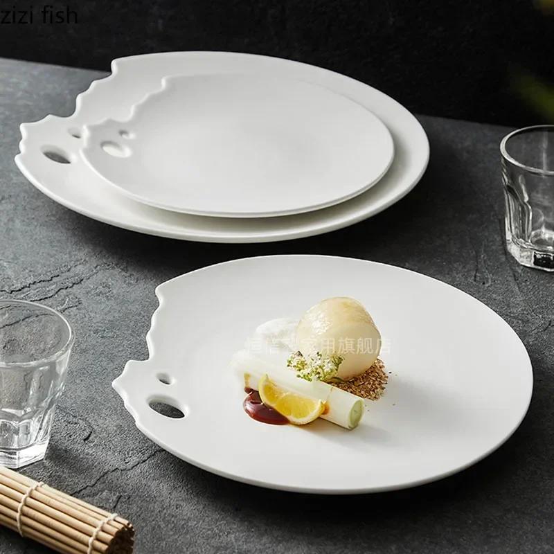 Неправильная керамическая мелкая тарелка Креативная тарелка для завтрака Десертная тарелка Тарелки для готовки Специальная посуда для молекулярной кухни