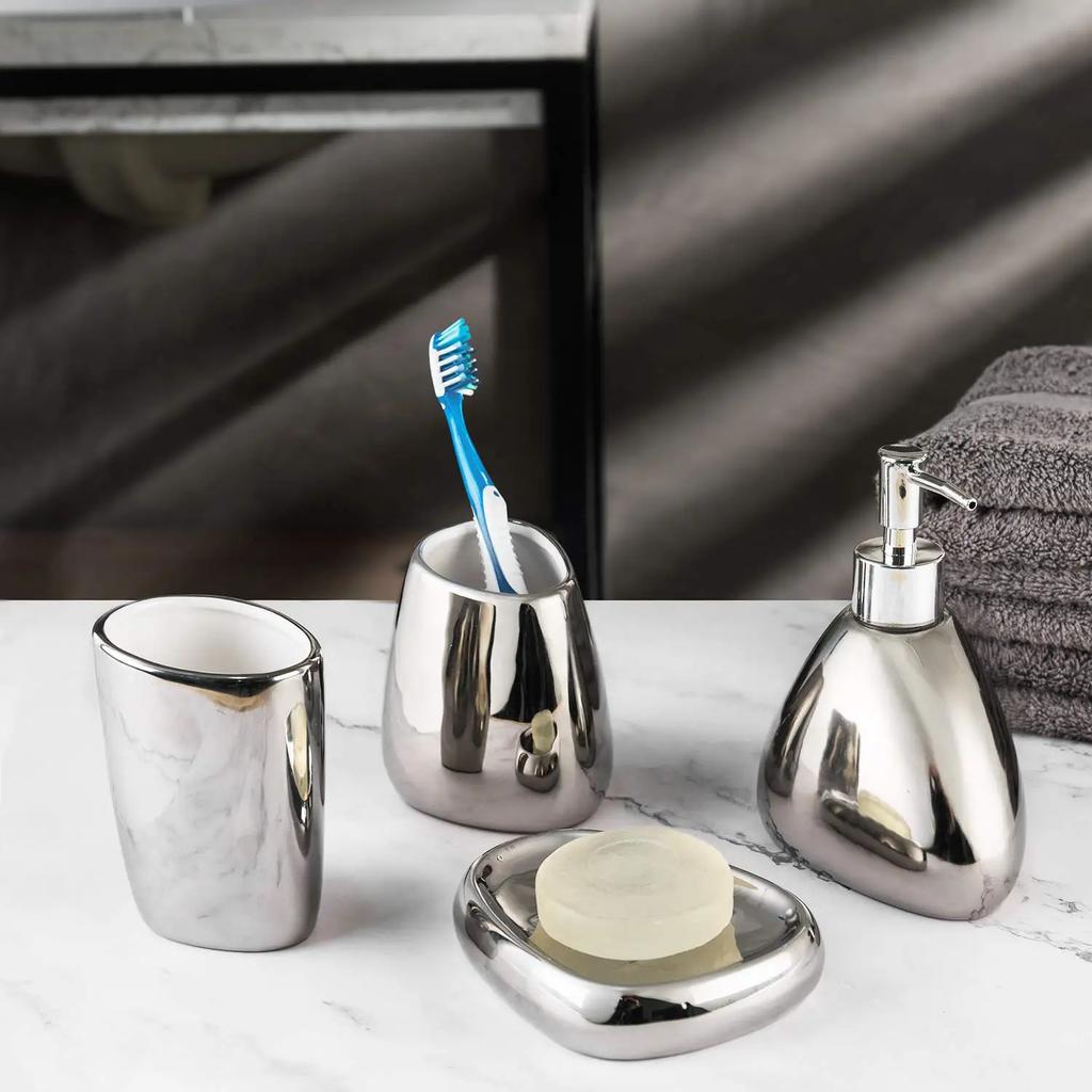 Набор из 4/5 предметов Полный набор Современный Керамический Серебряно-Золотой Набор Аксессуаров для Ванной Комнаты с Дозатором для Мыла для Современного Домашнего Декора