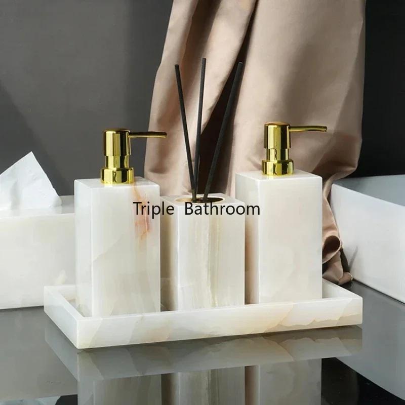 Белый Оникс Натуральный Мрамор Ванная Комната Аксессуары Роскошный Дозатор для Мыла Контейнер для Ватных Палочек Подставка для Аромадиффузора Набор для Ванной