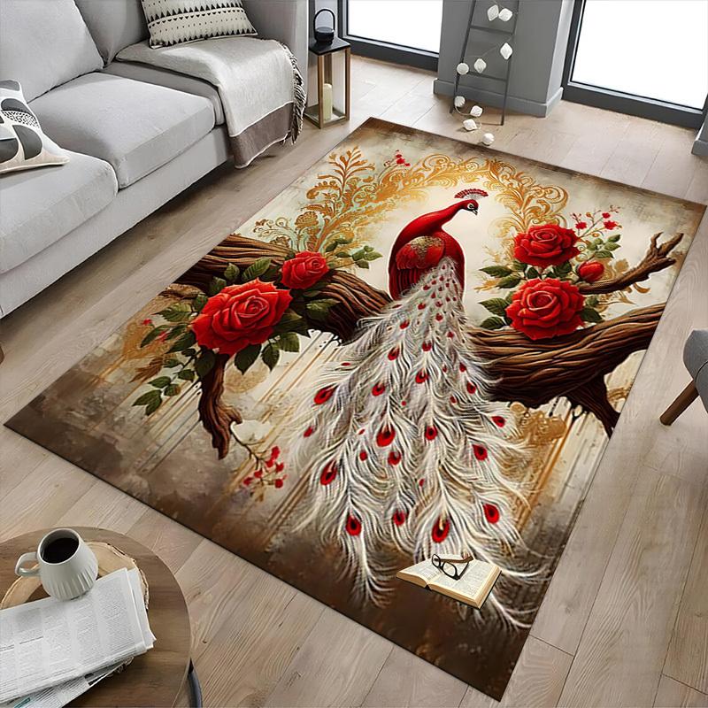1 шт. Ковер с павлинами и розами, очень большой, нескользящий, для пола, офиса, семьи, спальни, студии, ковер большого размера, ковер для помещений