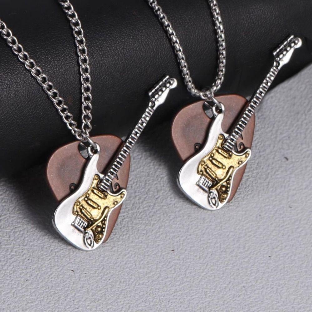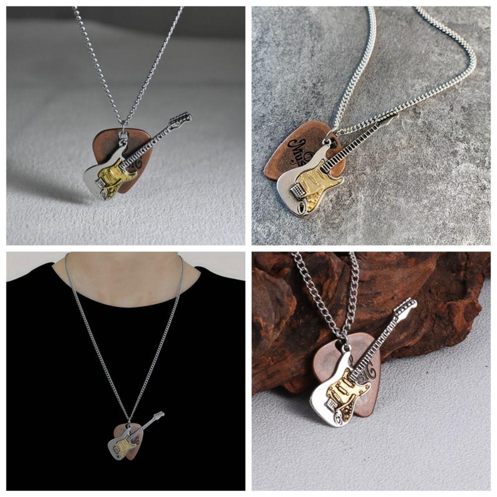 Vintage Punk Rock Pendant Chain Choker Music Guitar Necklace Trendy Guitar Pick Necklace Hip Hop