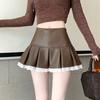 Женская мини-юбка с высокой талией, плиссированная, с кружевной отделкой, однотонная, повседневная, модная, короткая юбка