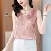 Женский топ-майка без рукавов с жаккардовым узором в китайском стиле, ацетатный сатин, V-образный вырез, перекрестный дизайн, свободный крой, универсальный для многослойности или самостоятельного ношения