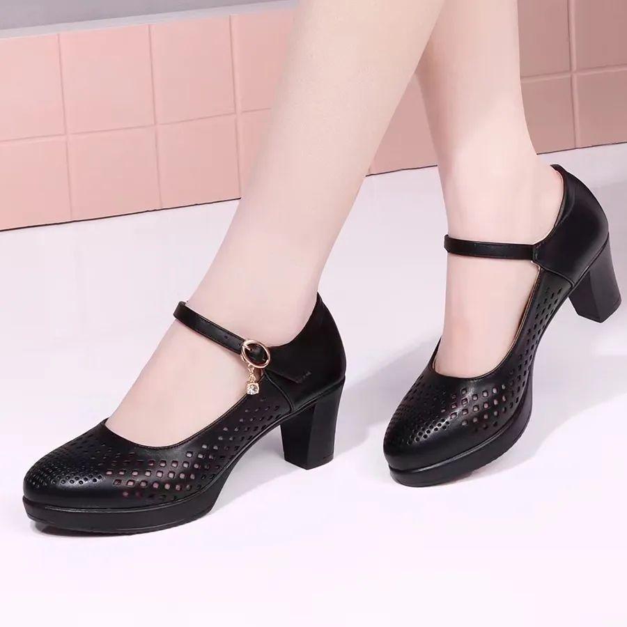 zapatos de mujer women fashion round toe black patent leather buckle strap square heel shoes for office work ab696