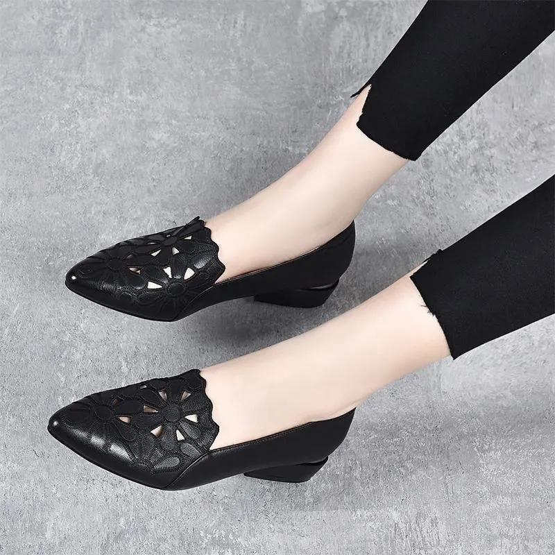 Женские милые остроносые черные кожаные туфли с цветочным узором и вырезами на квадратном каблуке женские классические для отеля работы офиса ab779 — купить товар онлайн с бесплатной доставкой по всему миру!