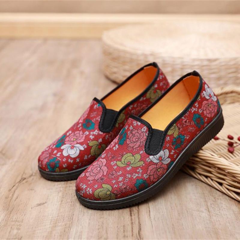 Женская обувь женская мода большой размер розовый цветочный узор танцевальные балетки женские повседневные синий комфорт противоскользящие лоферы ga223 — купить товар онлайн с бесплатной доставкой по всему миру!