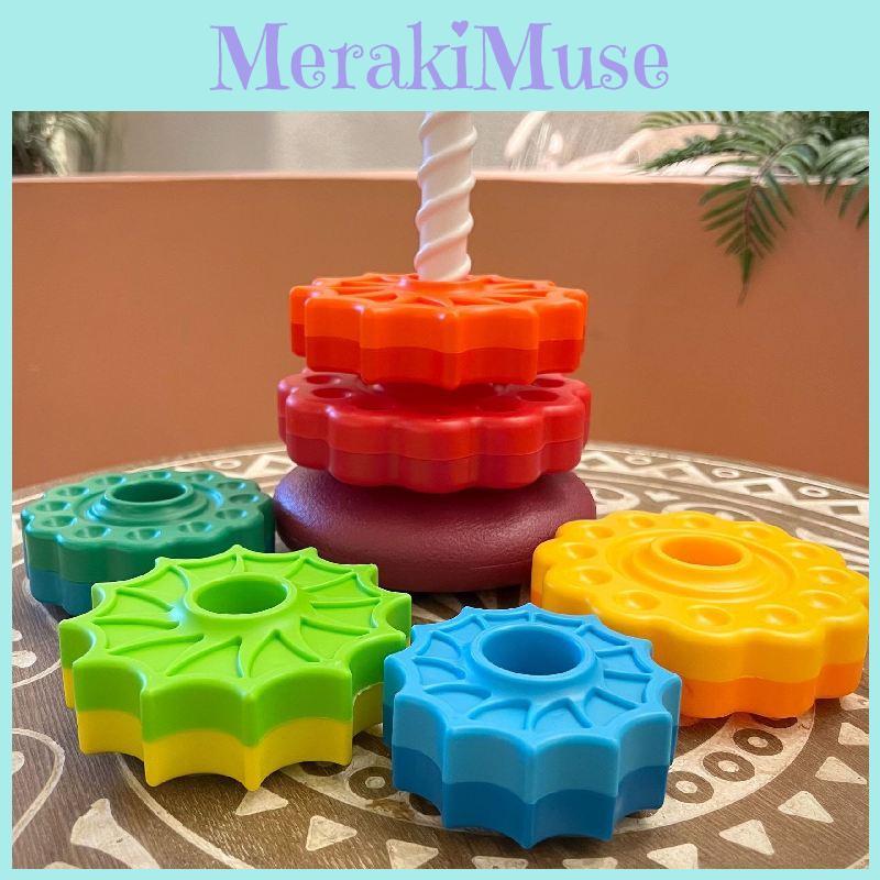 Красочная пластиковая радужная башня для складывания для малышей 1-2 лет. Развивающее развлечение
