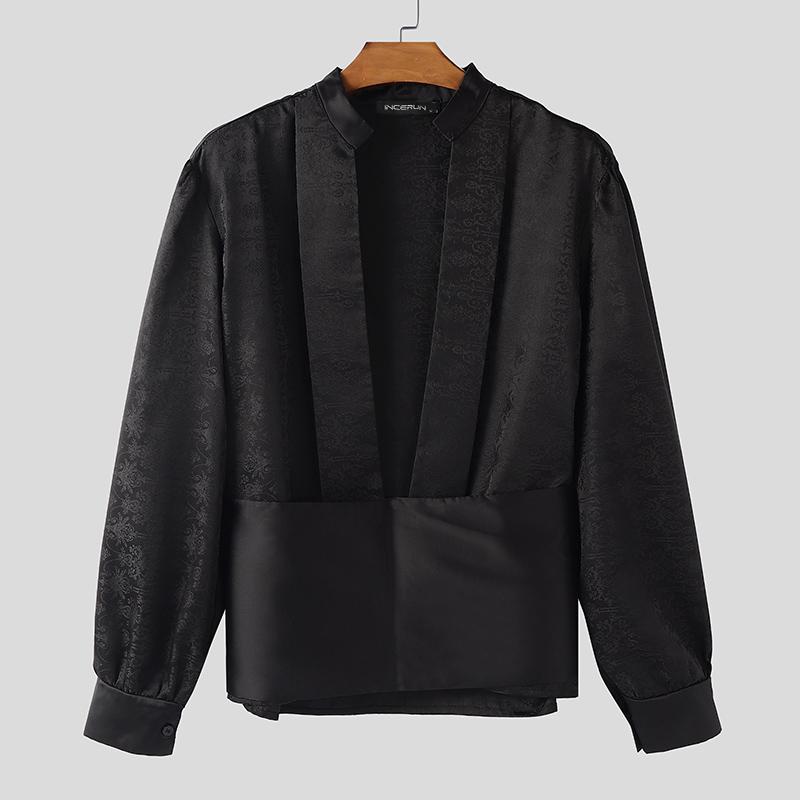 INCERUN Mens Deep V Neck Long Sleeve Floral Patchwork Front Cross Casual Elegant Crop T-shirts — купить товар онлайн с бесплатной доставкой по всему миру!