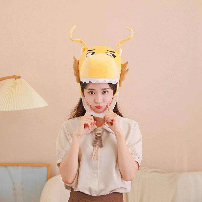 Оптовая Золотая шляпа с головой дракона для фотореквизита и выступлений, мультяшная плюшевая шляпа, талисман года)