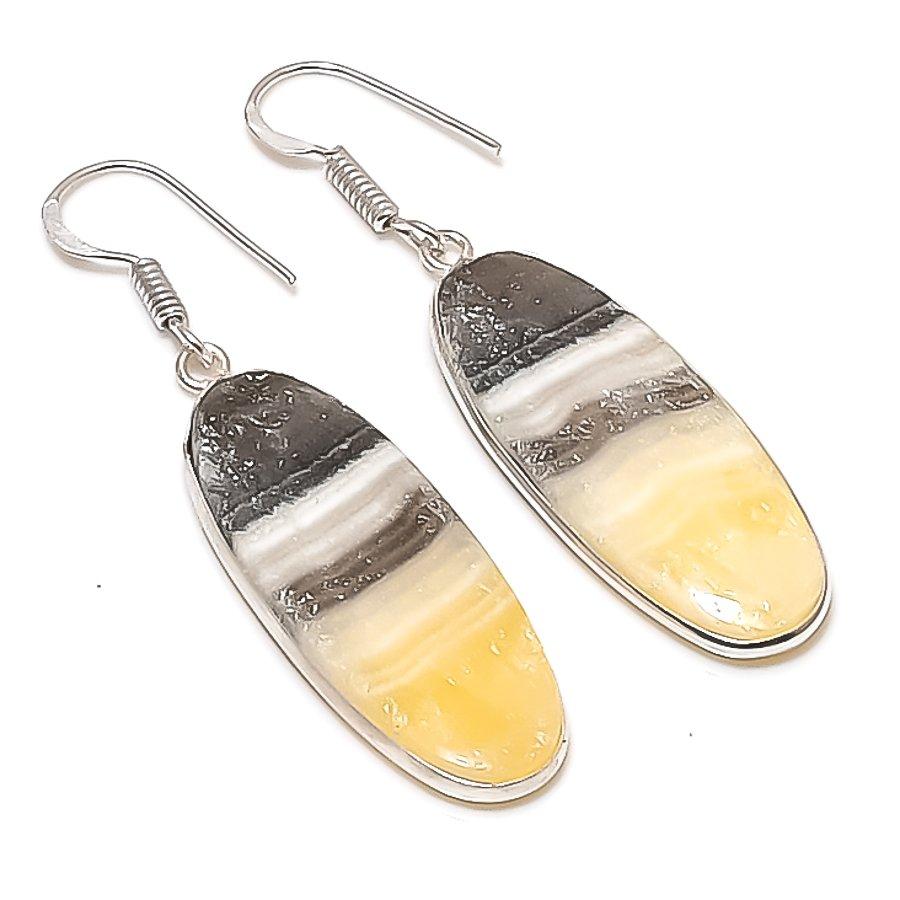 Натуральный Агат Кружевной Камень Ручной Работы Серьга из Стерлингового Серебра 925 пробы 2,17" AE-11606