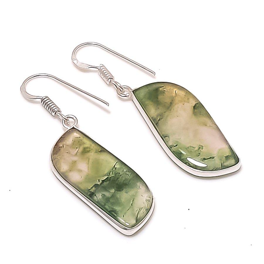 Натуральный моховой агат Камень-самоцвет Ручная работа Серьга из стерлингового серебра 925 пробы 1,85" AE-11411