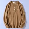 HK Company Tail Single Washed Minimalist Easiest for Match Men Waffle Small Embroider Henry Collar Long Sleeves T-shirt Bottoming Shirt Fashion