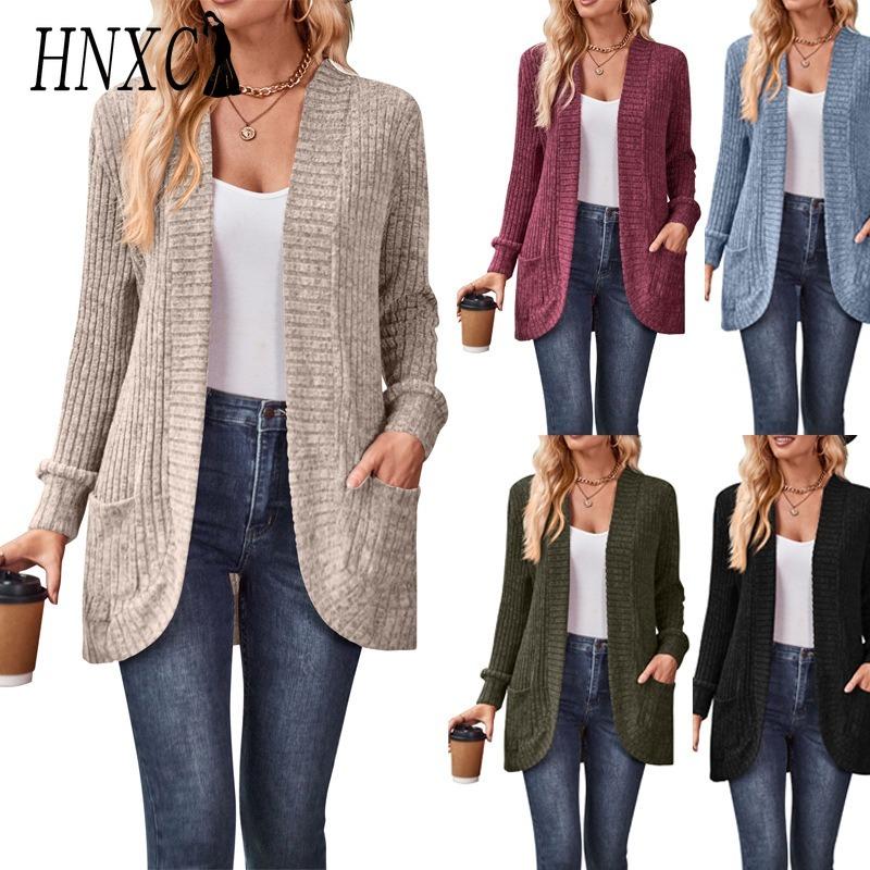 HNXC Женские винтажные повседневные однотонные куртки и пальто с длинными рукавами на осень и зиму с принтом