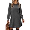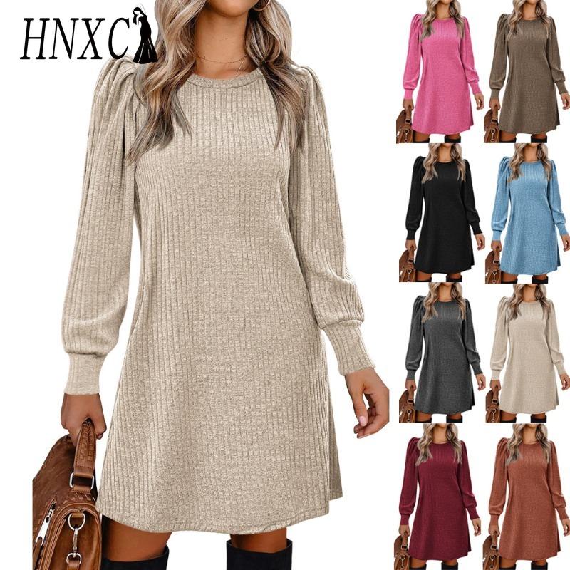 HNXC Женская мода осень-зима сплошной цвет печати с длинным рукавом и круглым вырезом повседневные платья