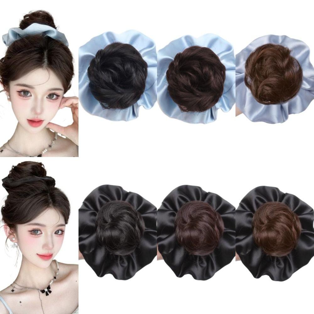 Satin Scrunchie False Hair Pieces Claw Clip Ponytail Chignon Fashion Flower Bun Head Wig Daily Use