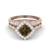 6mm Cushion Smoky Quartz 925 Sterling Silver Rose Vermeil Dual Shank Halo Accents Women Wedding Ring