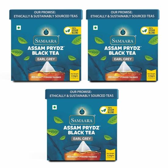 Samaara Prydz Assam Black Tea Bags | Earl Grey Flavour CTC Powder | 40 Bags Pack of 3