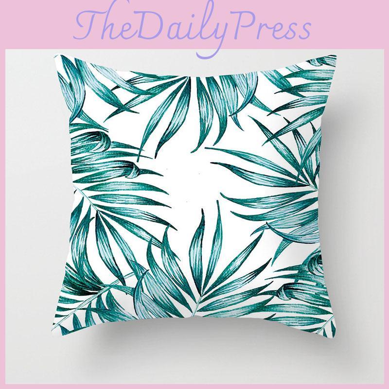 Элегантная зеленая тропическая растительность листья пальмы льняная наволочка с классическим дизайном 18"x18"