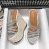 Модные шлепанцы на танкетке с высоким каблуком 15 см, летняя пляжная обувь для женщин, шлепанцы с блестящими ремешками, повседневные шлепанцы Pantuflas Mujer