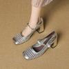 Французские плетеные ажурные туфли-лодочки летние дышащие с квадратным носком на высоком каблуке из ПУ кожи туфли Мэри Джейн Zapatos De Mujer