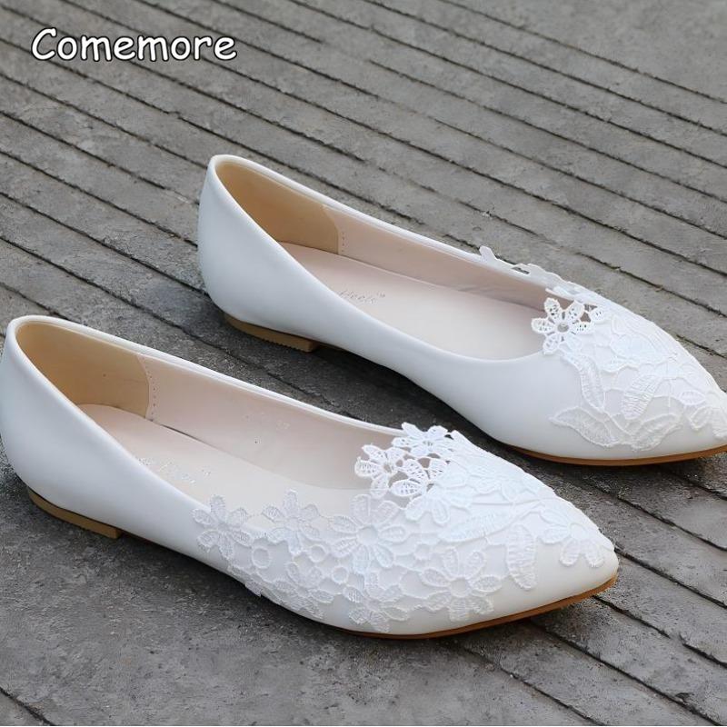 Большие размеры 35-43 Женские белые кружевные свадебные балетки с заостренным носком на низком каблуке, элегантные лоферы без шнуровки Zapatos De Mujer — купить товар онлайн с бесплатной доставкой по всему миру!