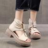 Винтажные кожаные сандалии на среднем каблуке, летние, с открытым носом, женские туфли, летняя обувь, повседневные, для мамы