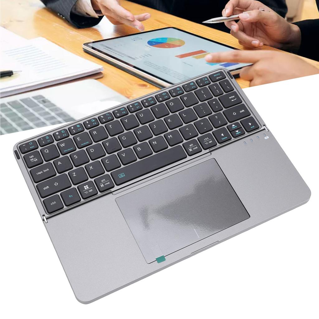Keyboard with Touchpad Multifunctional Quiet Typing Rechargeable Foldable 64 Key Keyboard for Laptop Tablet