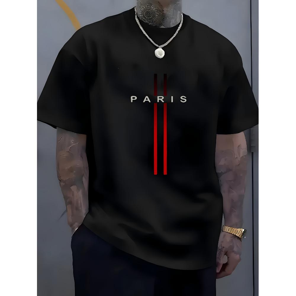 Европейские размеры Мужская футболка с графическим принтом 'Paris' - Мягкая, с круглым вырезом, Слегка эластичная, Уличный стиль, Дышащая, Для любого сезона, Повседневная, Можно стирать в машине